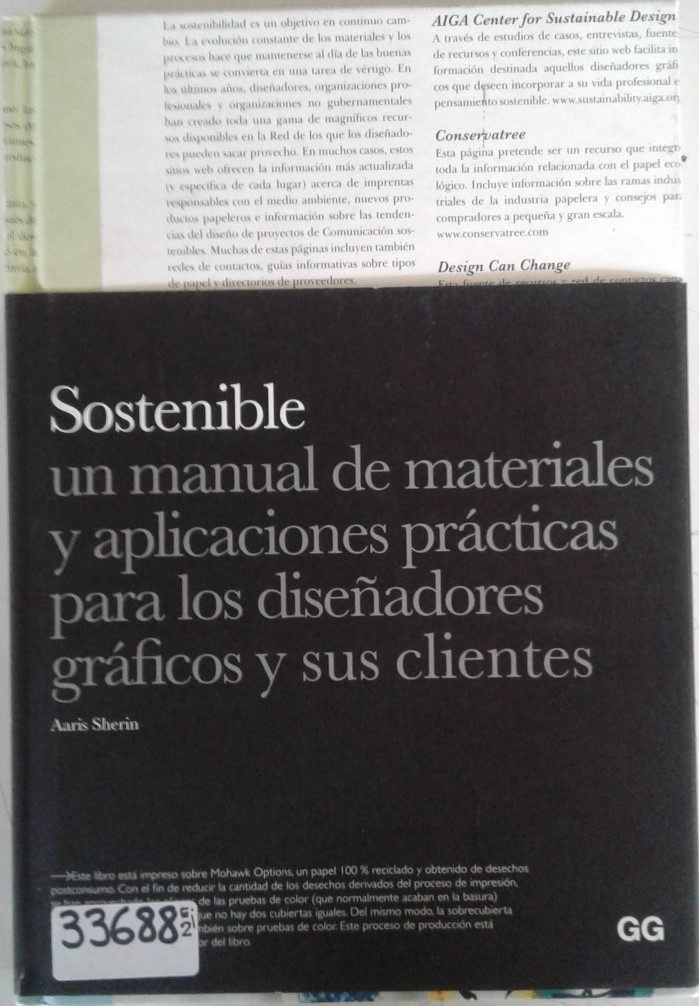 Sostenible: un manual de materiales y aplicaciones prácticas para los diseñadores gráficos y sus clientes | Sherin, Aaris | 87-4 |