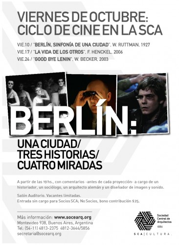 - Viernes 10 de Octubre: “Berlín, sinfonía de una ciudad de Walter Ruttman (1927).