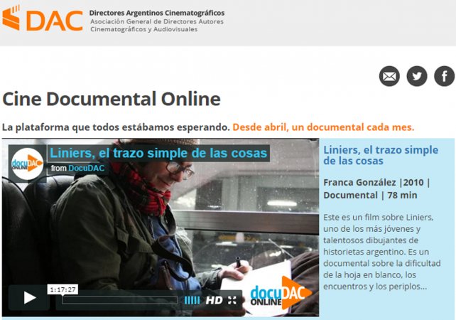 Directores Argentinos Cinematográficos lanzó su plataforma especial Docudac Online que ofrecerá sin costo un documental distinto cada mes.