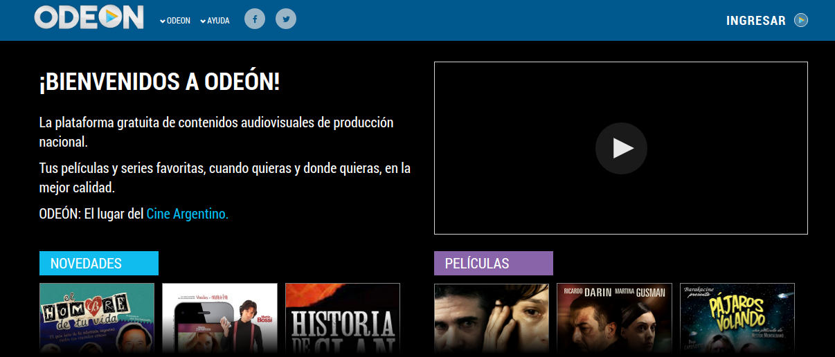 A partir de diciembre, Odeón tendrá una nueva apuesta: Odeón Estrenos, que permitirá incorporar estrenos en simultáneo con las salas de cine de películas nacionales, en una modalidad conocida como transaccional o de alquiler. Esto implica que se acordará que las películas que estrenen en paralelo con Espacios INCAA podrán tener su estreno virtual en Odeón, al que la gente podrá acceder por un valor similar al ticket de sala. En una primera etapa, Odeón Estrenos ofrecerá este servicio bonificado para todos los usuarios. Más adelante, su valor será económico y acorde a la entrada de los Espacios INCAA.