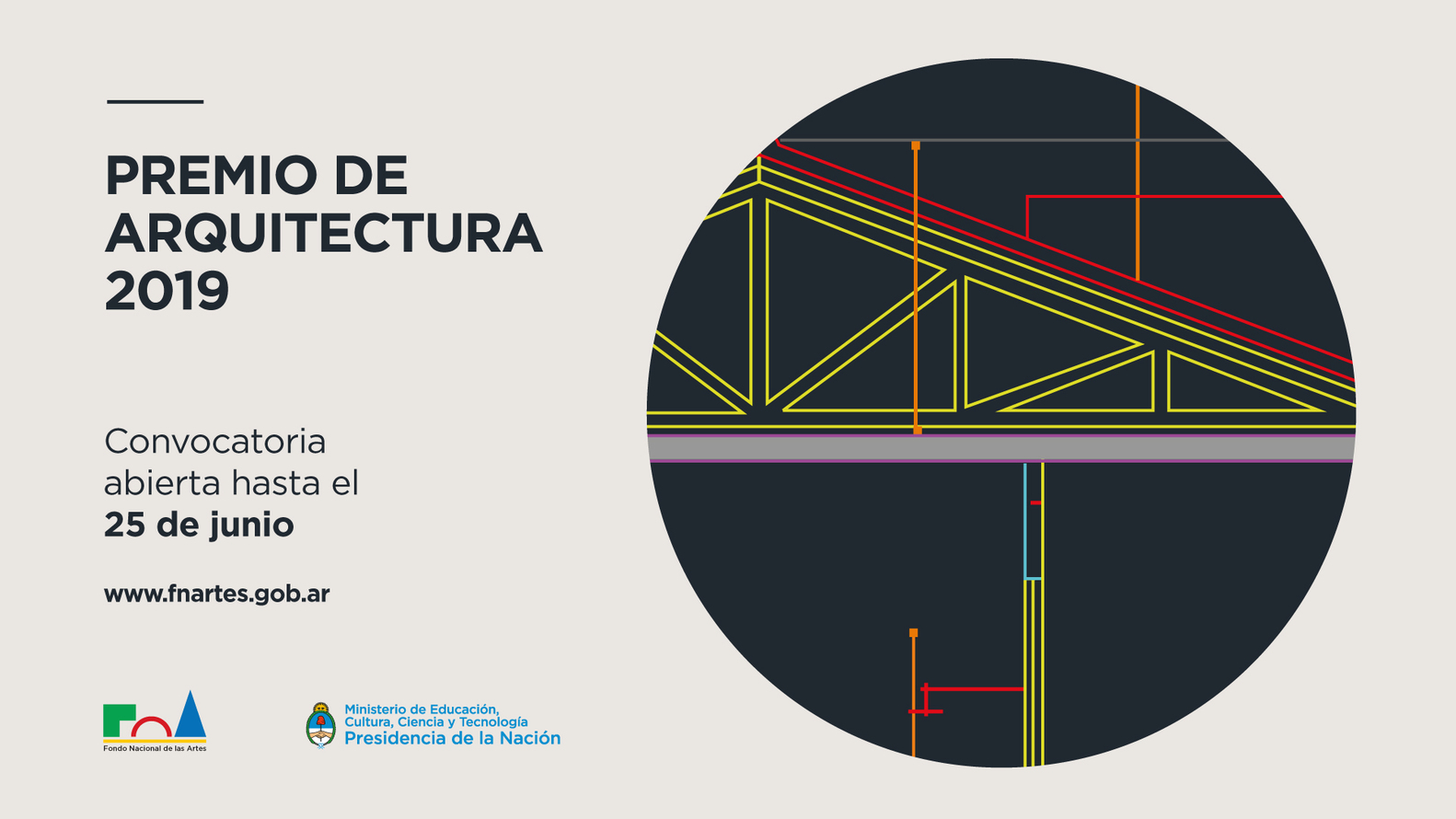 Segunda edición de Premio de Arquitectura Espacios Culturales 2019 del Fondo Nacional de las Artes, concurso que busca destacar y visibilizar aquellas obras destinadas a espacios culturales, sean estos comunitarios o de uso particular, públicos o privados, destinados a museos, teatros, auditorios, salas de concierto, galerías de arte, salas de radiofonía, cines, bibliotecas, librerías, talleres de creación artística, estudios destinados a la producción artística, espacios de ensayo y similares.