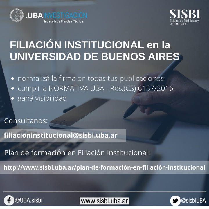 Si querés saber como indicar de manera apropiada tu filiación institucional escribinos a filiacioninstitucional en sisbi.uba.ar