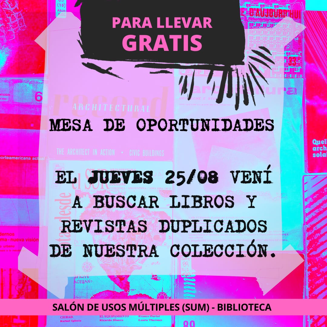 El Jueves 25 de Agosto , vení a buscar libros y revistas duplicados de nuestra colección. |
