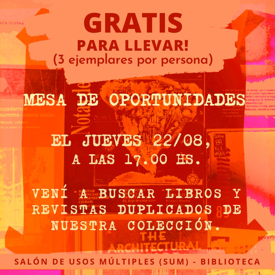 El Jueves 22 de Agosto , vení a buscar libros y revistas duplicados de nuestra colección. |