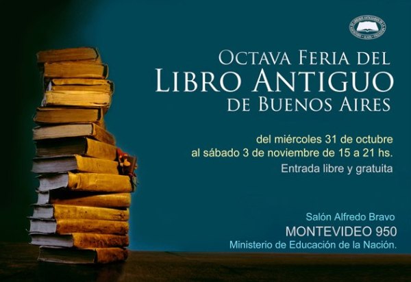 La VIII Feria del Libro Antiguo en Buenos abrirá sus puertas desde mañana y hasta el sábado 3 de noviembre en el salón “Alfredo Bravo†del Ministerio de Educación de la Nación en Montevideo 950, con entrada libre y gratuita.