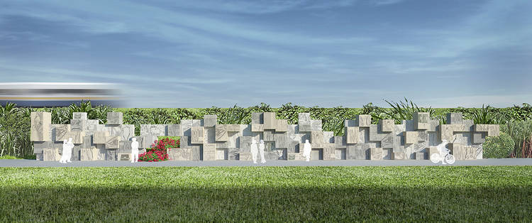 Estructurado como un muro, el memorial está compuesto de 114 prismas de hormigón armado, de un metro de frente por anchos y alturas variables. Las alturas fluctúan entre los sesenta centímetros y 1,40 metros, mientras que los anchos son tres: 30, 60 y 90 centímetros. Las piezas también varían de color y en algunos casos son pigmentados. El muro tiene 39 metros de alto por una altura máxima de cuatro, y estará incrustado sobre el terraplén del ferrocarril que acompaña la Avenida Dorrego. El monumento, que está fragmentado en dos partes, no solo hace referencia al Holocausto. El primer segmentos contiene 29 piedras, la cantidad de víctimas del atentado a la Embajada de Israel en 1992, mientras que el segundo tramo cuenta con 85 piezas, en referencia al número de víctimas de la Amia, en 1994.