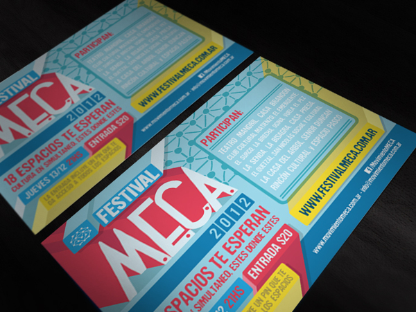Varios Centros Culturales Independientes de la Ciudad de Buenos Aires, nucleados en Meca (Movimiento de Espacios Culturales y Artísticos) organizan un festival que se llevará a cabo el próximo jueves 13 de diciembre, en 18 espacios, a partir de las 21 horas. La entrada es de $20 (veinte pesos) e incluye un pin que garantiza el acceso a cada uno de los lugares participantes.