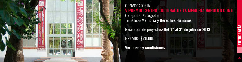 Impulsado por la Secretaría de Derechos Humanos de la Nación, por intermedio del Centro Cultural Haroldo Conti (CCMHC), y con el apoyo del Fondo Nacional de las Artes, la quinta edición de este premio invita a presentar un ensayo fotográfico (entre 10 y 20 imágenes, en color o blanco y negro) que contemple algunos de los cuatro ejes planteados, destinados a dar cuenta de la relación memoria y derechos humanos.