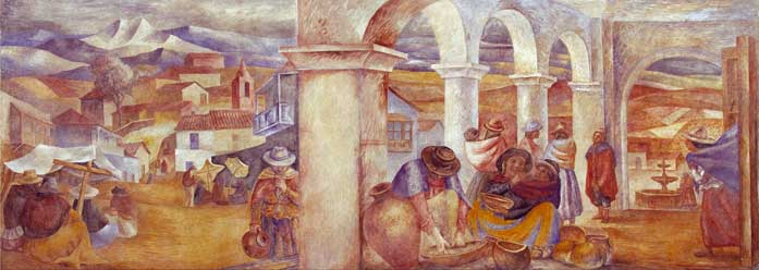 , único fresco buono de temática indigenista que se conserva del gran maestro argentino. Documentado fotográficamente en el archivo Berni de la Fundación Espigas, no se le conoce título pero podría llamarse Mercado colla o Mercado del altiplano (ca. 1940). Esta incorporación al acervo del museo y a la colección permanente implica una importante iniciativa de restauración y difusión del patrimonio nacional.