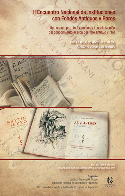 Debido a ello, nos complace invitarlos a participar de este II Encuentro Nacional de Instituciones con Fondos Antiguos y Raros, que apunta a que, no sólo la atención profesional se vea interesada sino a que también la opinión pública se sienta comprometida con el resguardo y la promoción del patrimonio documental de la Nación.