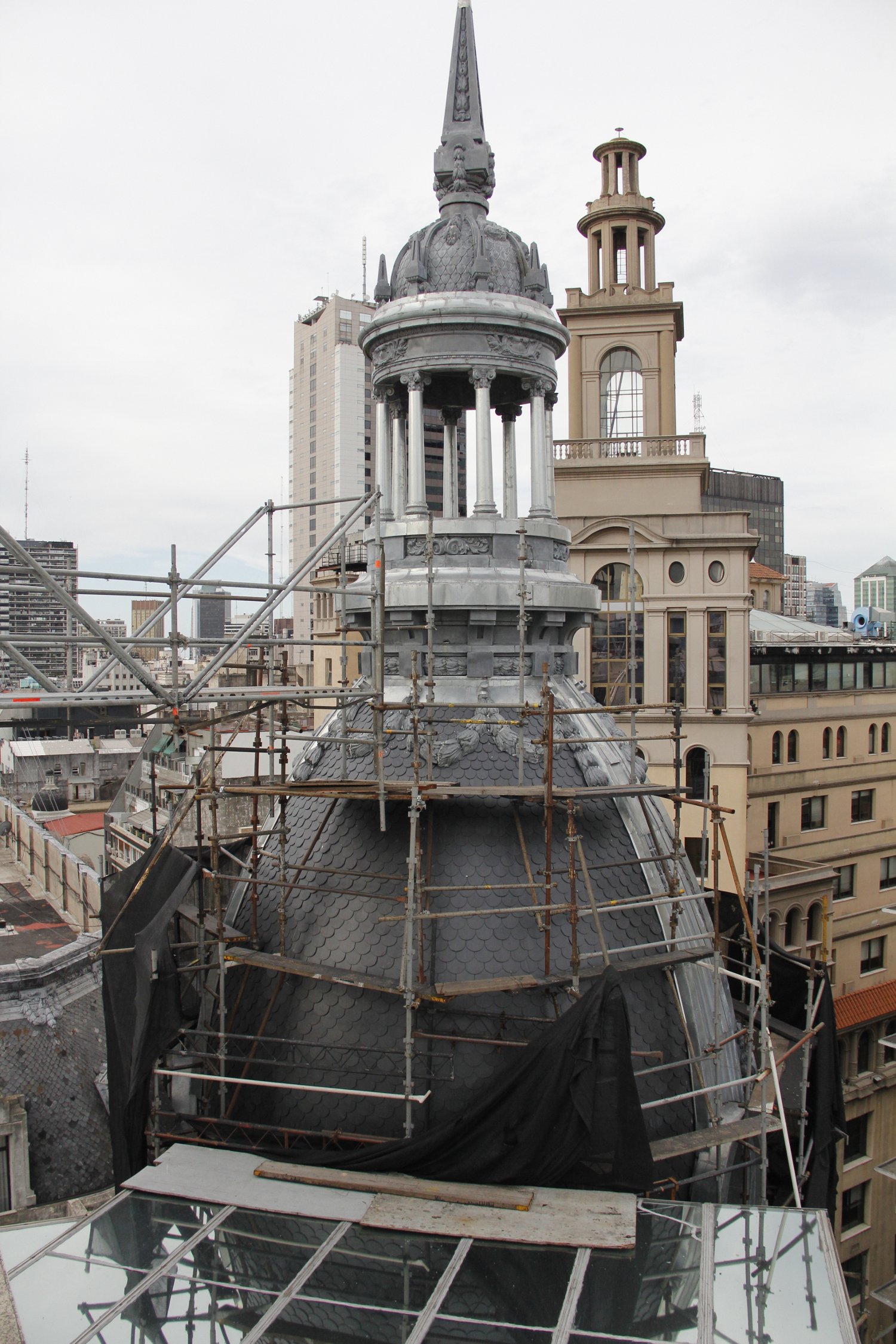 Otra de las piezas atendidas durante esta primera etapa de restauración fue el mirador de la cúpula que, a través de sus columnas, otorga una visión de 360° de la city porteña. Esta particular característica edilicia presentaba filtraciones debido a su deteriorado estado.