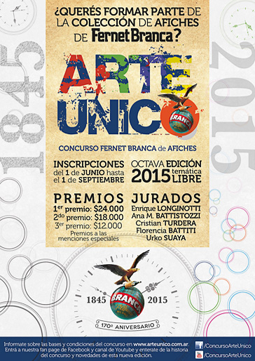 En el año de su 170º aniversario, y comprometida a su filosofía vinculada con el arte, Fernet Branca anuncia el lanzamiento de la 8ª edición del Concurso de Afiches “Arte Único”, que convoca a jóvenes artistas de 18 a 40 años de todo el país a que plasmen su creatividad y talento en una obra libre asociada al espíritu de Fernet Branca, utilizando la pintura, la fotografía, el diseño y cualquier tipo de disciplina artística o la combinación de varias de ellas.