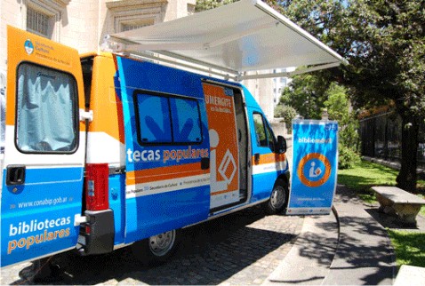 El bibliomóvil es un vehículo equipado como biblioteca circulante y pequeño centro cultural. En estantes cerrados, traslada 300 libros y material multimediático para niños, adolescentes y adultos; equipamiento informático, sonido y audio, plasma y acceso a Internet. Cada bibliomóvil está provisto de 300 títulos de narrativa juvenil, latinoamericana y argentina.