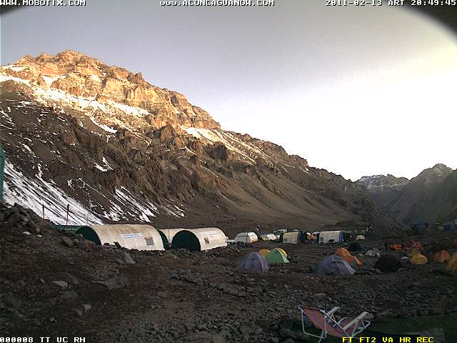 "Aquí también tengo instalada una camara web que envía imagen del campamento en tiempo real cada tres minutos a mi sitio no comercial www.aconcaguanow.com