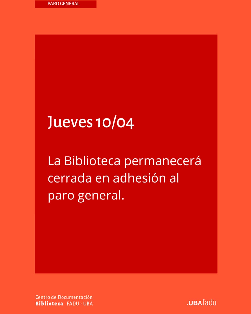 El día Jueves 10 de Abril, la biblioteca permanecerá cerrada en adhesión al paro general. |