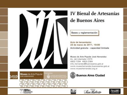 Se trata de la muestra en la que se exhibirán los trabajos de artesanos seleccionados y premiados. La bienal busca jerarquizar la artesanía urbana como Patrimonio Cultural de la Ciudad y contribuir a la formación de una colección permanente en el Museo de Arte Popular José Hernández.