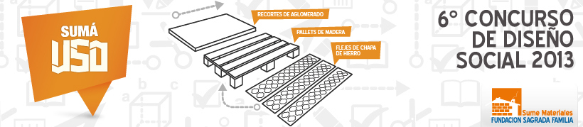 Con el objetivo de promover el diseño como una herramienta para mejorar la calidad de vida de la familia mediante la refuncionalización de materiales en desuso, se convoca a profesionales, estudiantes y apasionados del diseño y la arquitectura. El desafío es crear un producto útil y novedoso para la vivienda a partir de materiales que son recibidos como donaciones en el corralón social “Sume Materialesâ€.